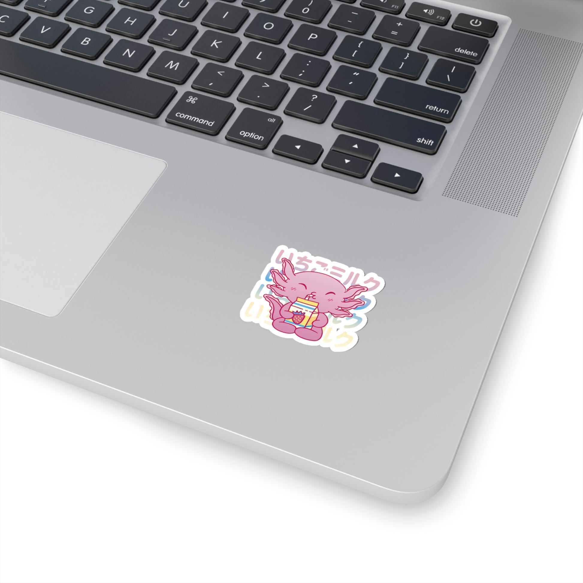 Cute Axolotl Drinking Strawberry Milk Pastel Kawaii Aesthetic, Yami Kawaii, Japanese Aesthetic Otaku Sticker