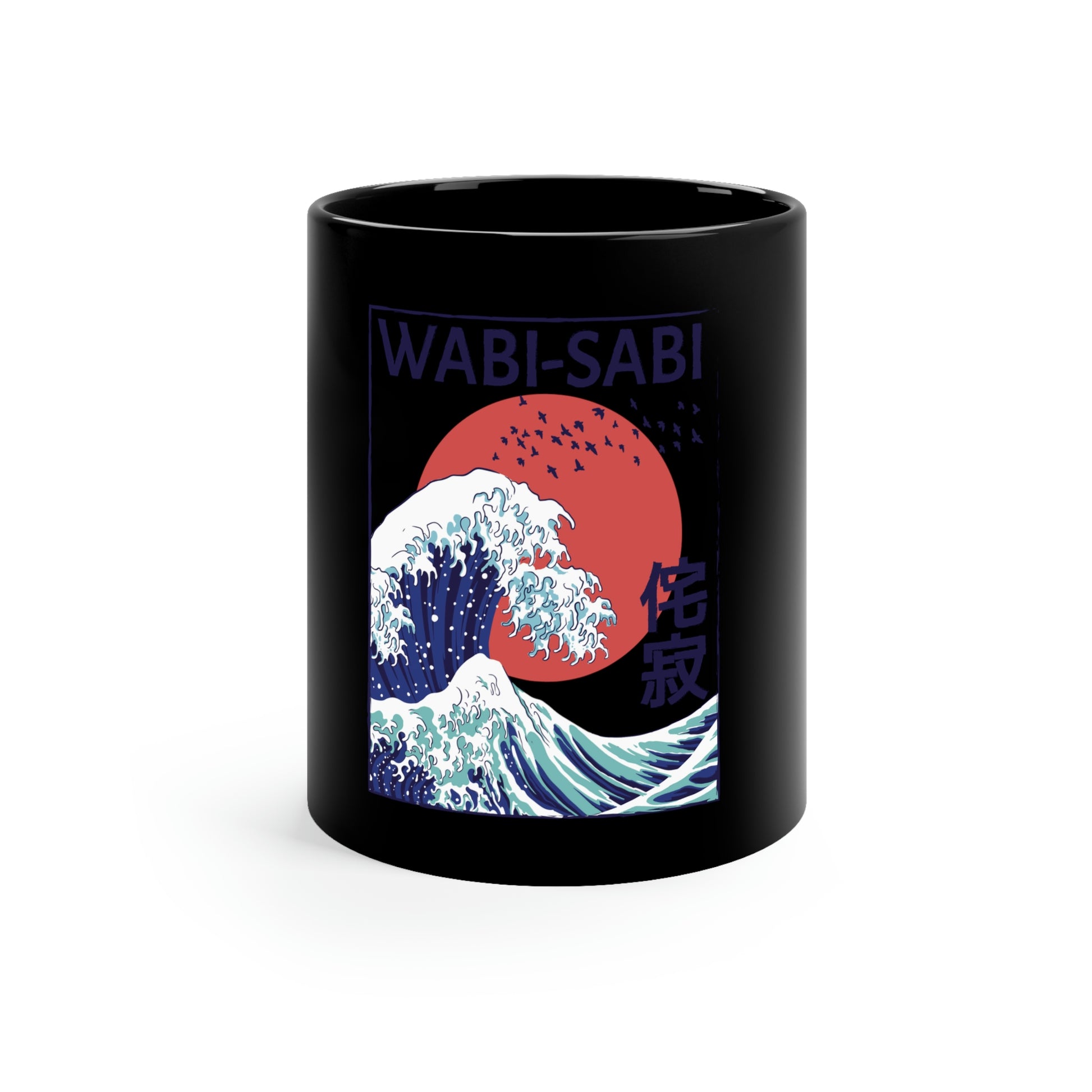 Indie Japanese Art, Japan Streeetwear Retro, Japanese Aesthetic Wave 11oz Black Mug